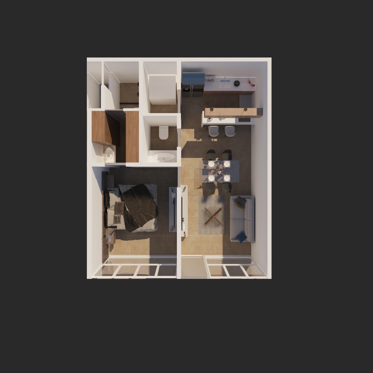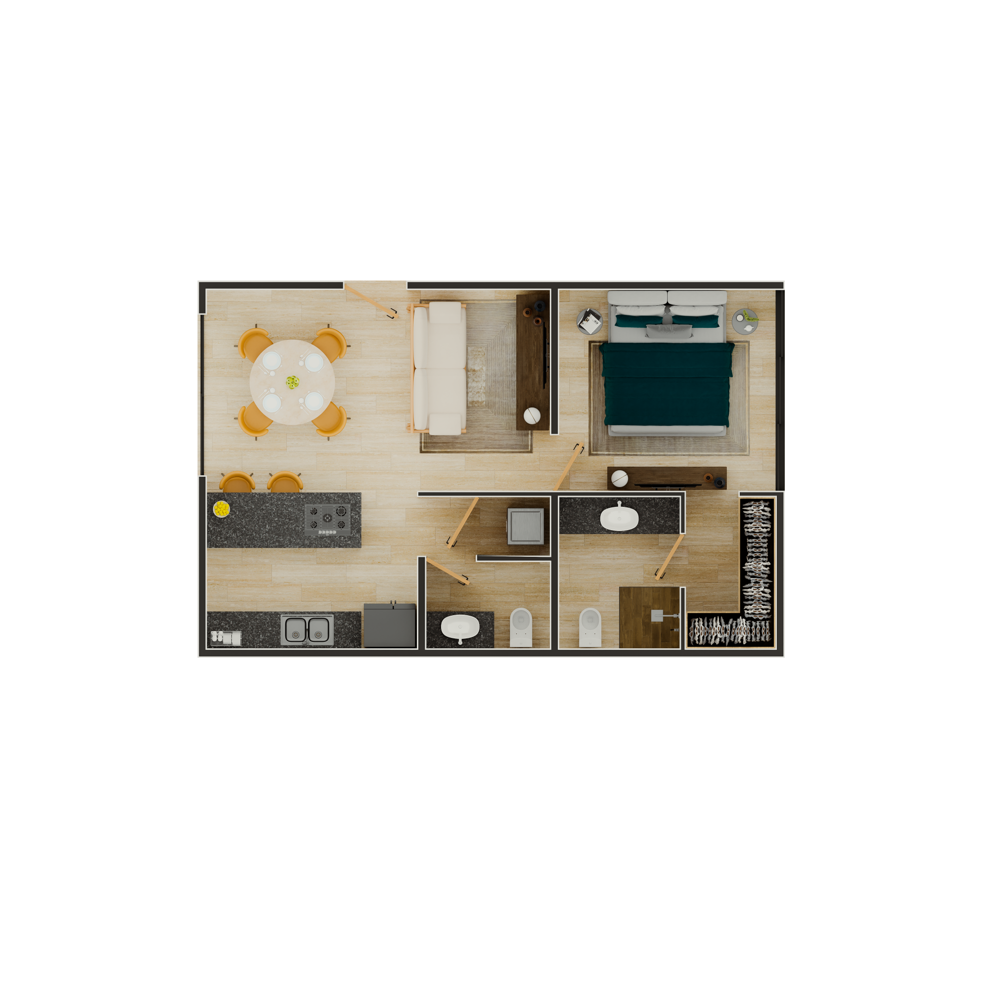 14 departamentos de 1 recámara, distribuidos en dos niveles de planta baja y nivel 1, con dos modelos a elegir con amenidades.