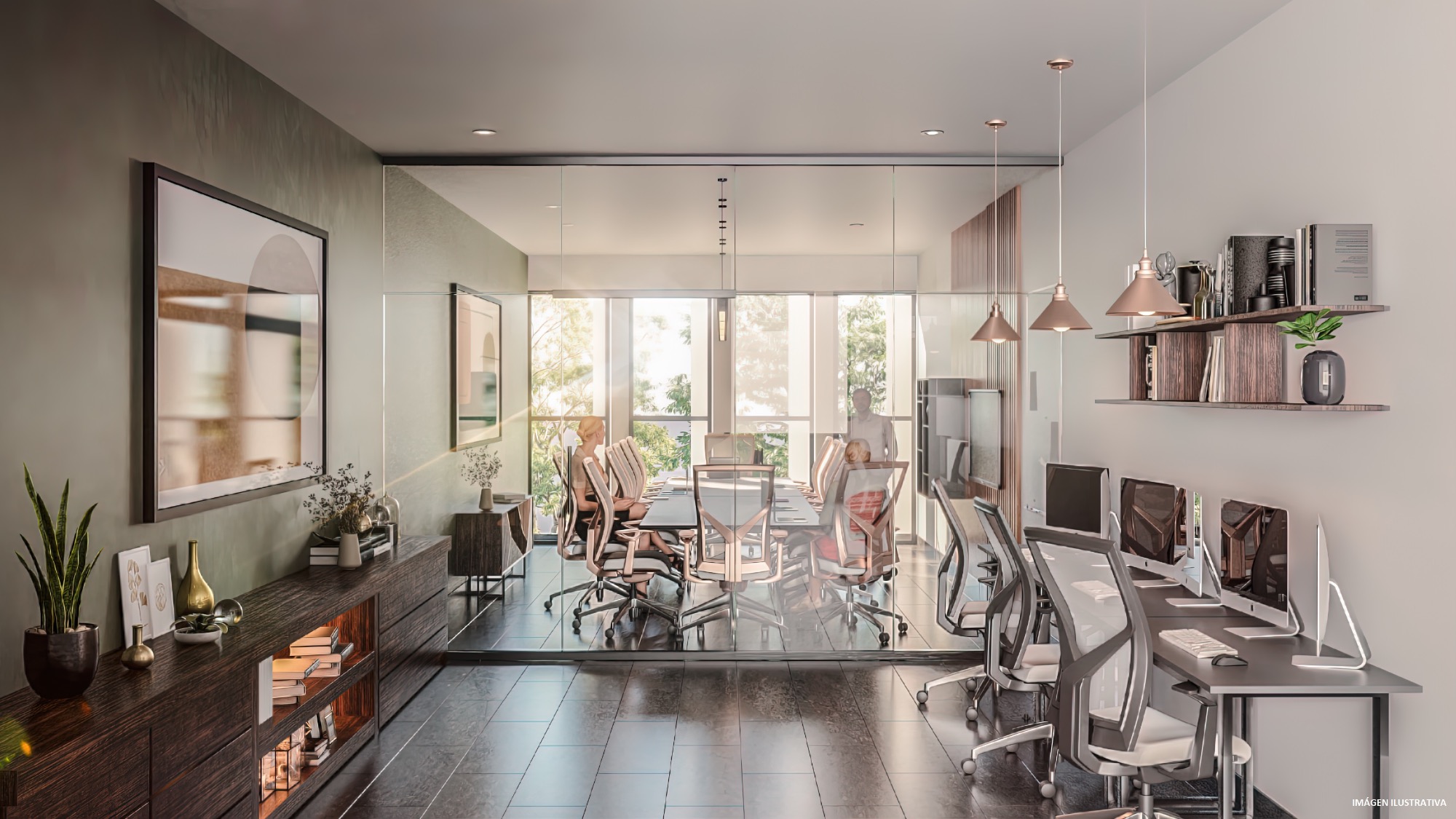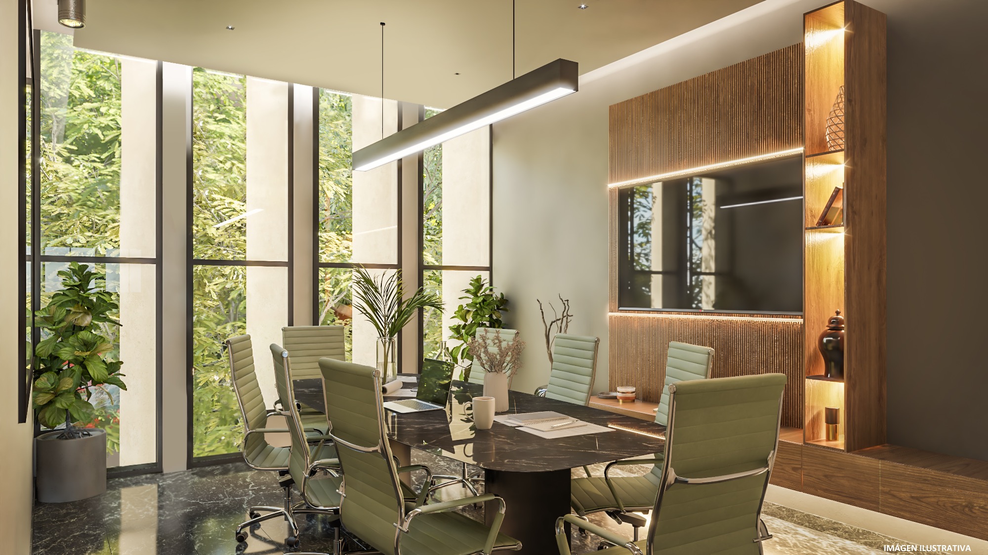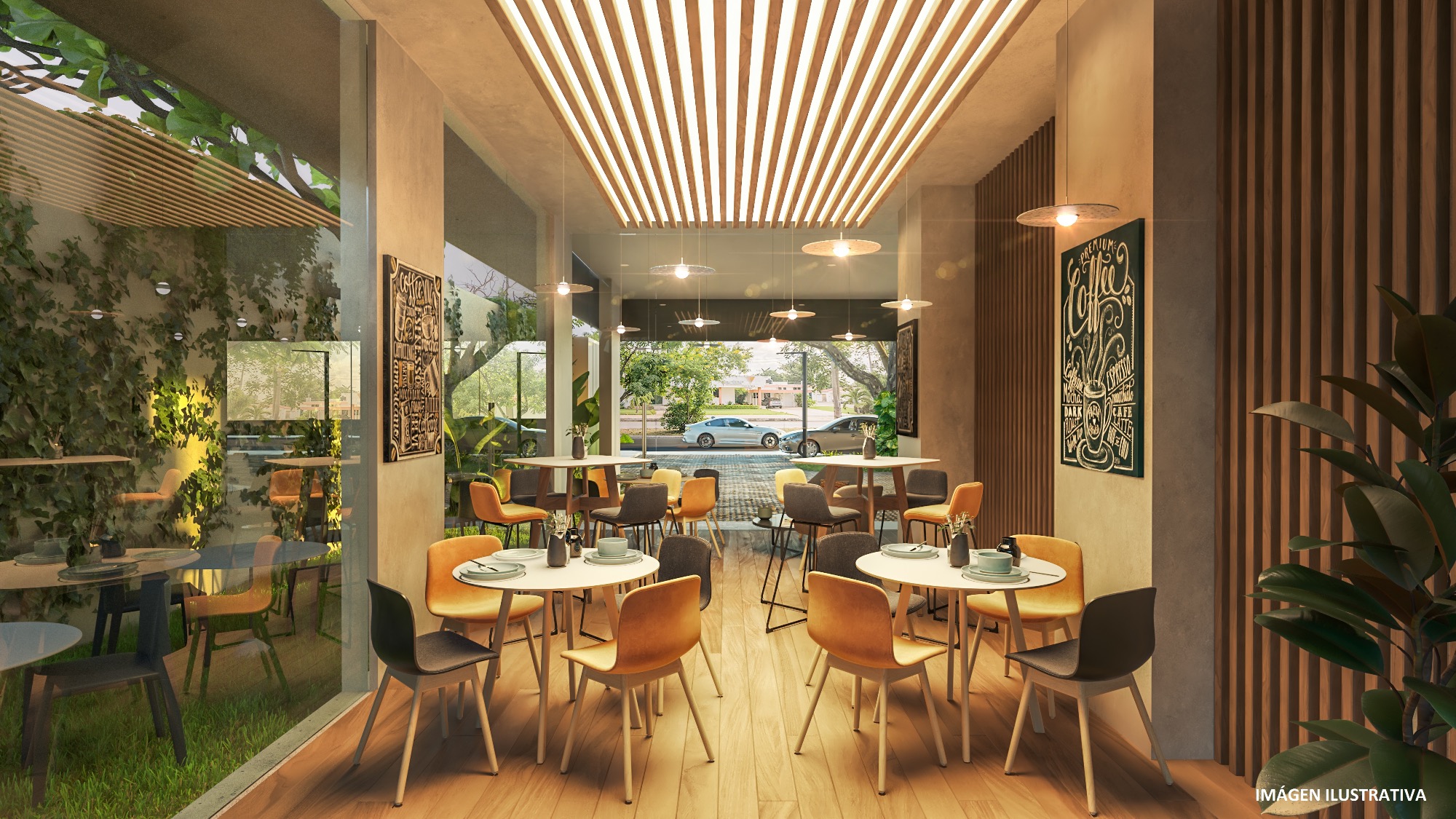 Cinco locales comerciales, en planta baja, habilitados para distintos tipos de servicio, con estacionamiento de fácil acceso sobre la avenida José Díaz Bolio, pensados para negocios como cafeterías y restaurantes. Veintiún oficinas con 3 salas de juntas equipadas con TV y Wifi de alta velocidad, coffee station, baños de lujo por nivel y terraza garden.
