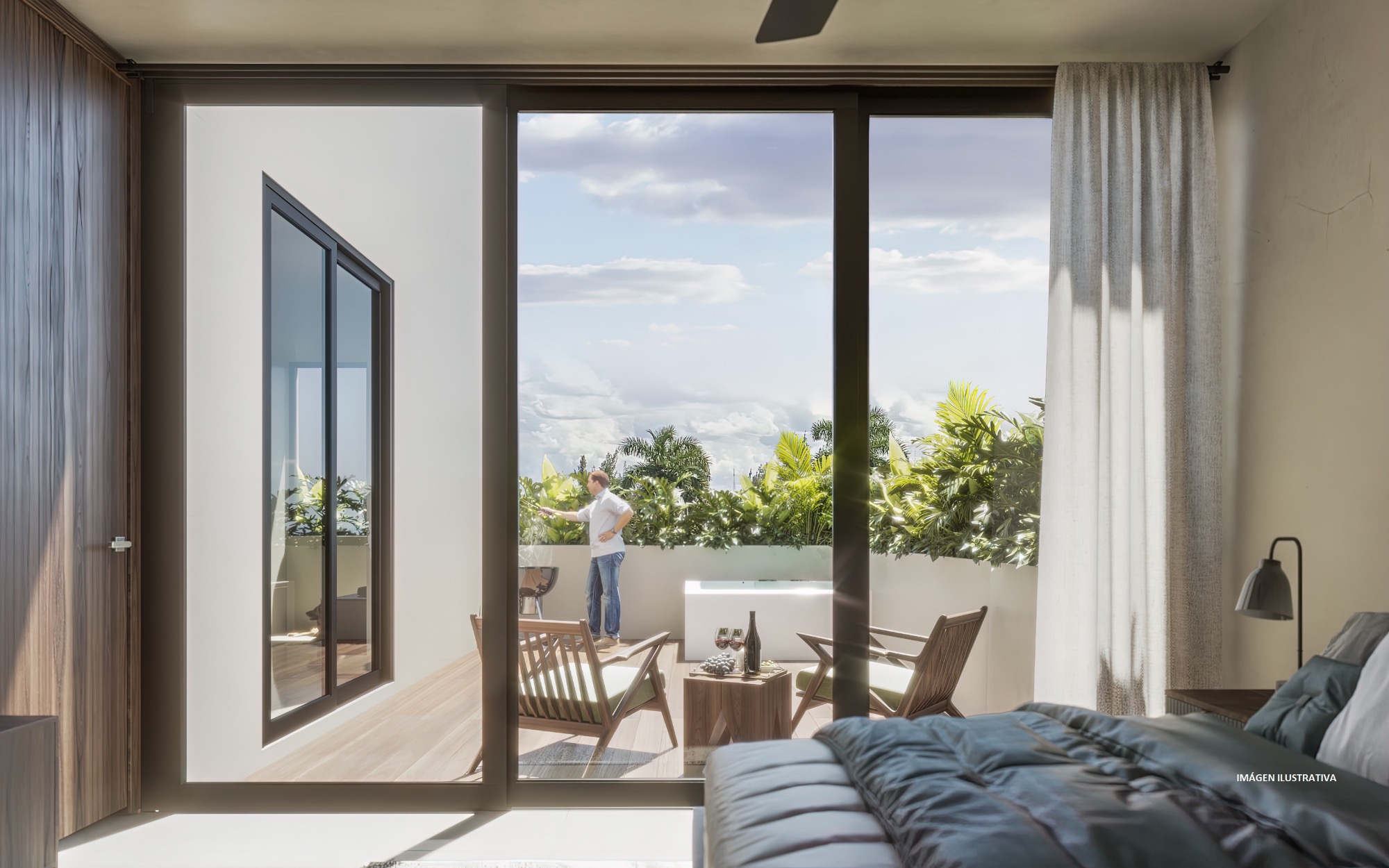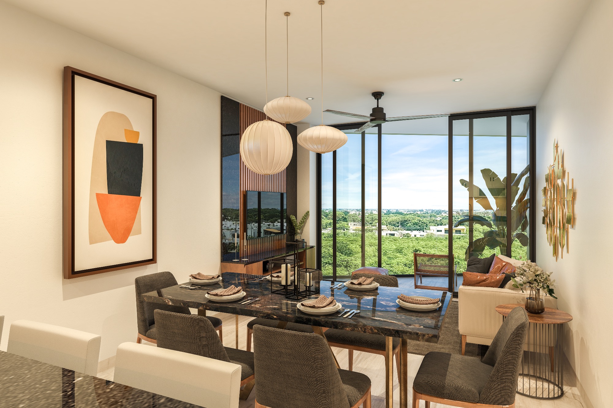 Exclusivo complejo departamental dentro del periférico de tres niveles, ubicado en la mejor zona de la ciudad: la zona norte de Mérida, a unas calles de Prolongación Paseo de Montejo.